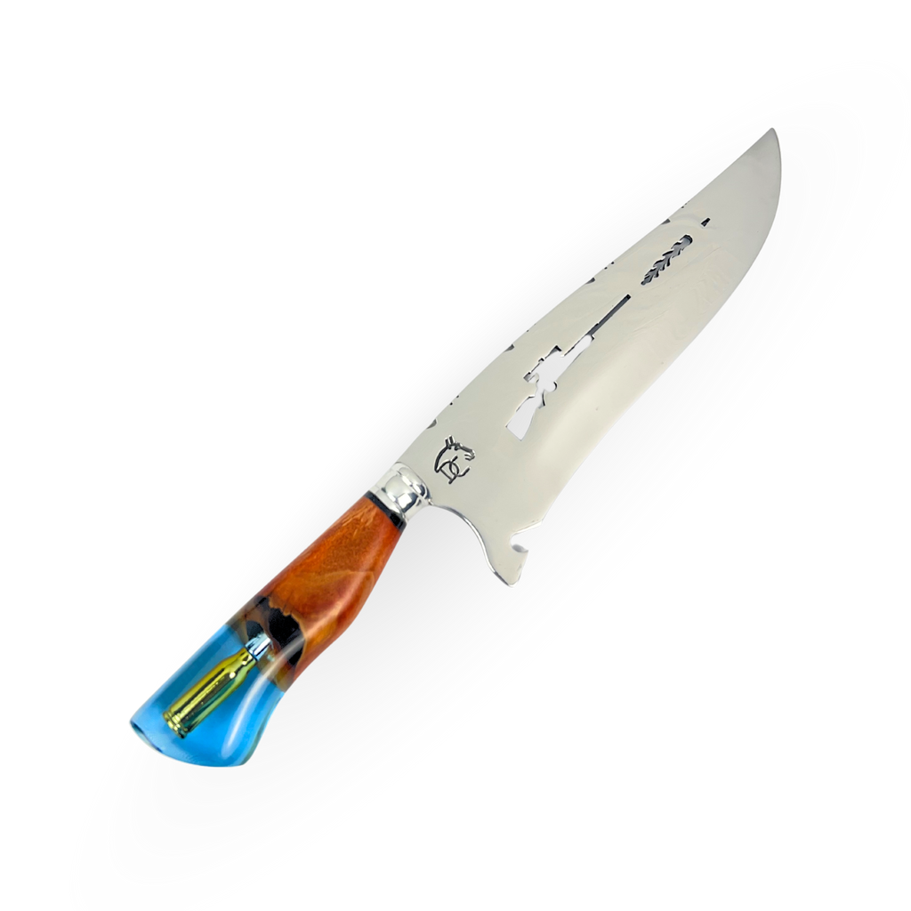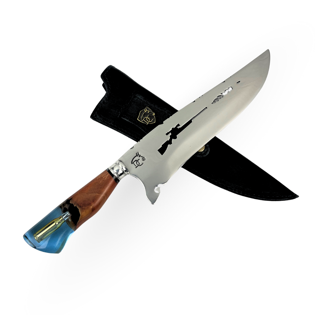 A Faca Sniper com munição no cabo é uma peça exclusiva e impressionante. Com lâmina de 10 polegadas em aço inox premium e cabo em resina com bala encapsulada, esta faca é perfeita para atiradores esportivos, militares e colecionadores.