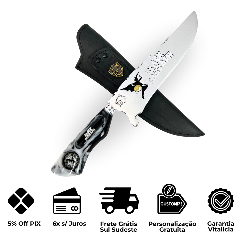 Faca Black Sabbath 8 Polegadas | Lâmina Vazada - Cabo Resina Personalizado
