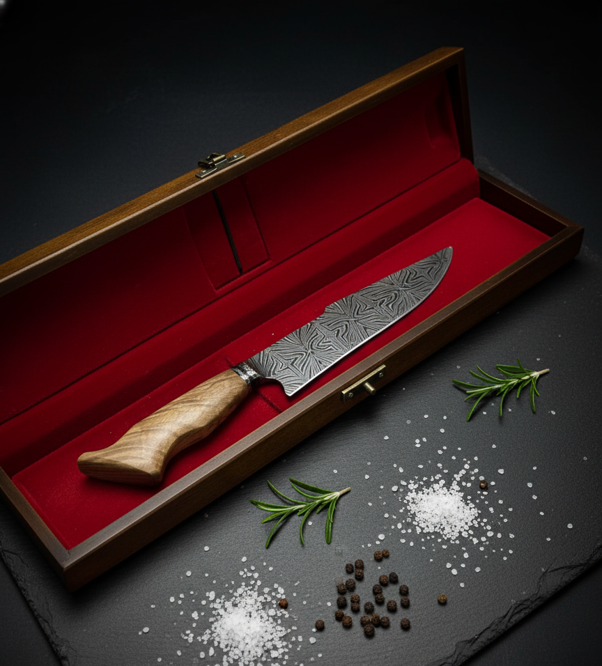Ideal para chefs exigentes, colecionadores e apreciadores de cutelaria de alto padrão. Perfeita para cortes precisos de carnes, peixes, aves e vegetais. A lâmina damasco oferece durabilidade excepcional e mantém o fio refinado por muito mais tempo.