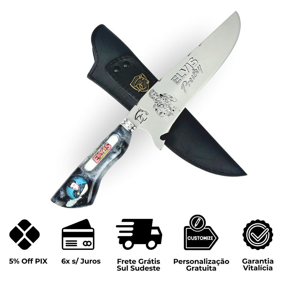 Faca Elvis Presley 8" - Cabo Resina Personalizado - Edição Especial Rock