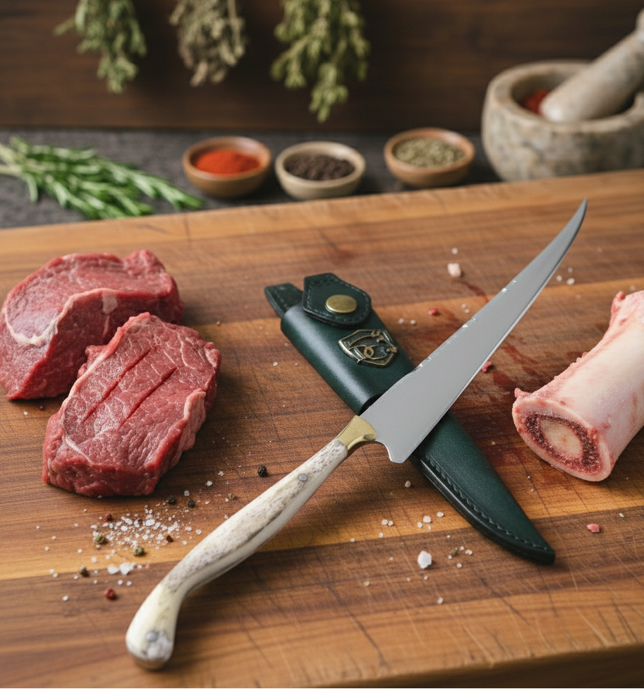 Experimente a perfeição no corte com nossa Faca Fileteira em Aço Inox 420C com Cabo de Osso Bovino, uma peça artesanal que combina tecnologia de ponta com materiais nobres e a tradição da cutelaria gaúcha.