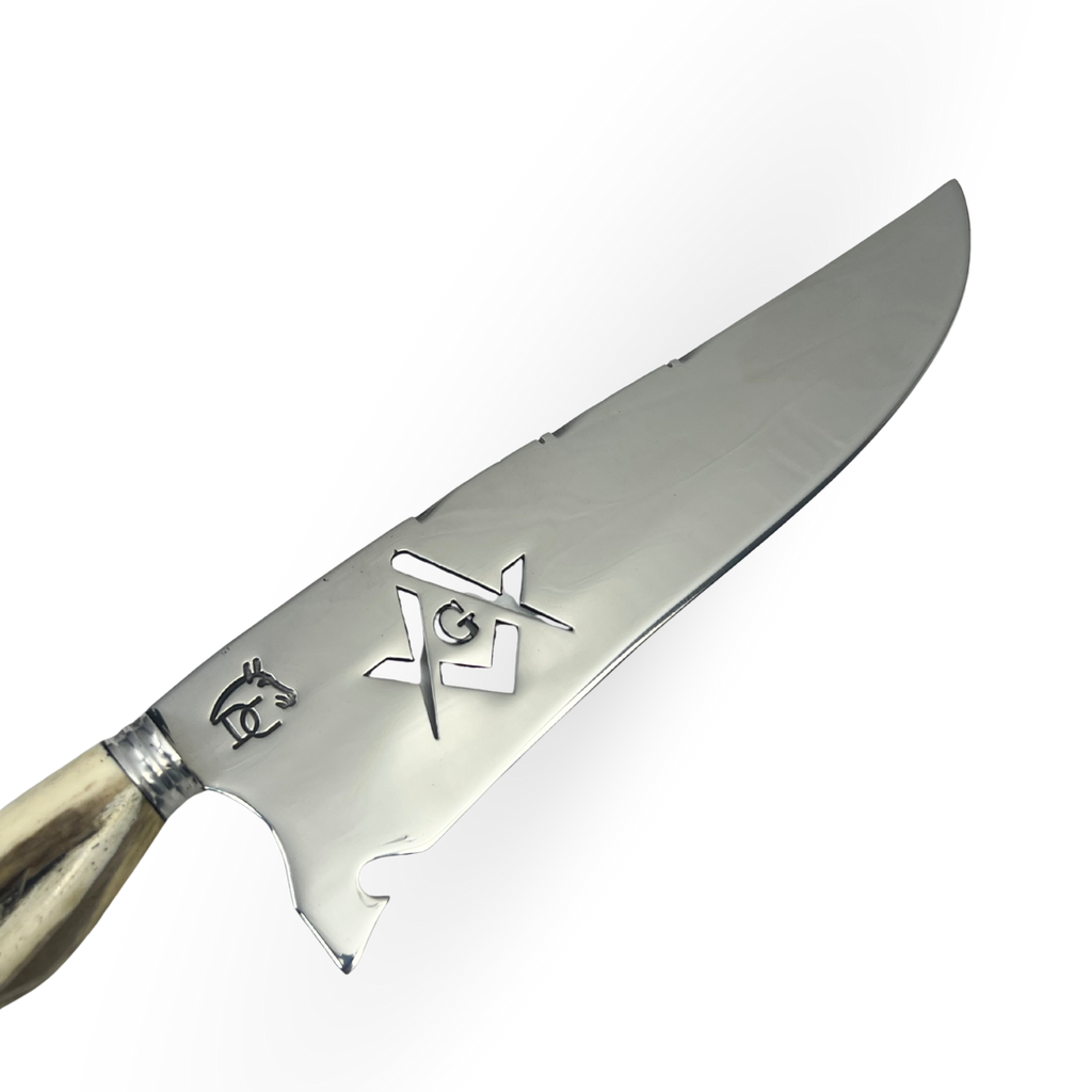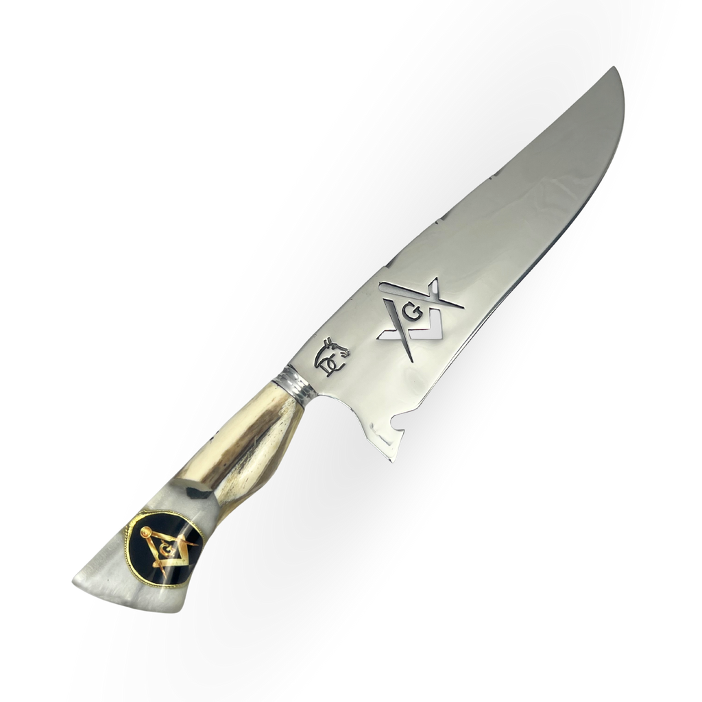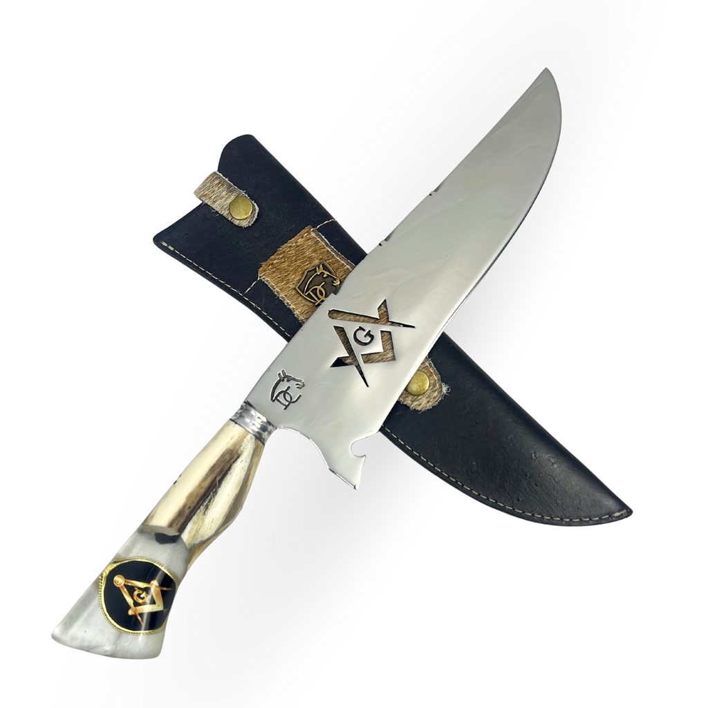 Esta faca picanheira foi especialmente desenvolvida para homenagear os valores e símbolos da maçonaria. O cabo exclusivo combina osso natural com resina, criando um visual sofisticado e único. O pingente maçônico dourado e os símbolos gravados na lâmina fazem desta peça um item de destaque.