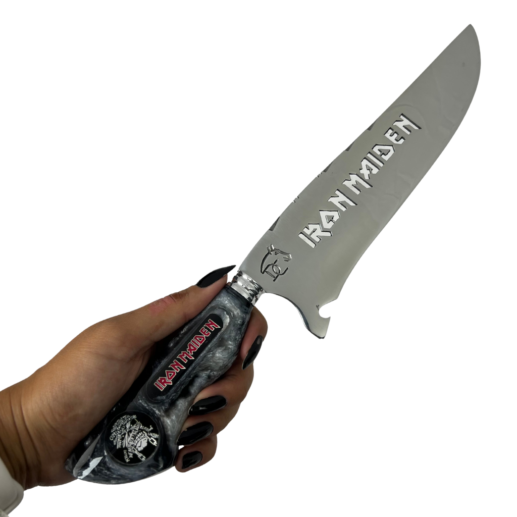 • Lâmina de 8 polegadas em aço inoxidável de alta qualidade com gravação personalizada do logo Iron Maiden