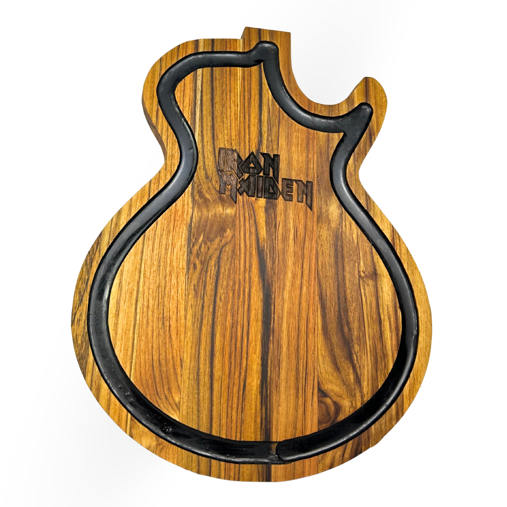 Tábua de corte artesanal 100% exclusiva com gravação do icônico mascote Eddie do Iron Maiden. Perfeita para quem une a paixão pelo rock clássico com o prazer de um bom churrasco.